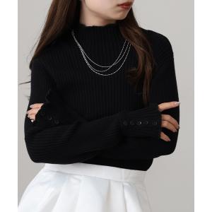 ニット セーター atONE メロウ襟タートルネックリブニット レディース