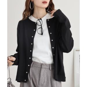 カーディガン atONE パールボタンクルーネックカーディガン レディース