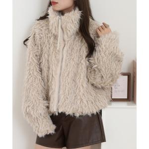 コート アウター ミックスシープファー スタンド ブルゾン ジャケット エコファー アウター レディース