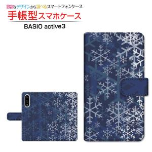 スマホケース BASIO active3 クリアケース付 au UQ mobile 手帳型 ケース カメラ穴対応 夜雪の結晶 冬 結晶 雪 スノー ひかり 夜 かっこいい