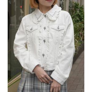 コート アウター ローズ刺繍フリルデニムジャケット レディース