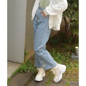 パンツ フラワー刺繍裏ゴムデニムPT レディース