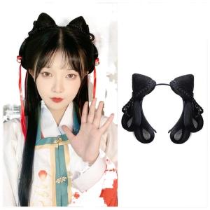 韓服コスプレウィッグ女性黒アニメ古代中国漢服かつらヘッドギアアクセサリー韓服ロングストレートかつら黒かつらヘッドバンド (Color : Lucky Rabbit)