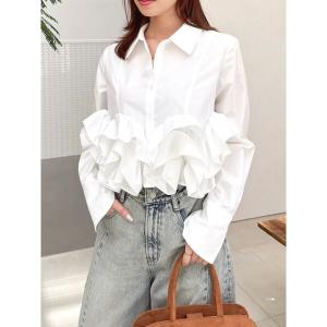 ブラウス シャツ ウェーブフリルショートシャツ レディース