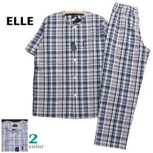 パジャマ Lサイズ メンズ 盛夏 紳士 半袖 長ズボン ELLE エル 先染サッカー地 綿100% 丸首 前あき 紳士 ナイトウエア