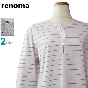 パジャマ Mサイズ レディース 春夏 長袖 長パンツ renoma レノマ 天竺ニット 綿100% 丸首 半開 婦人ナイトウエア