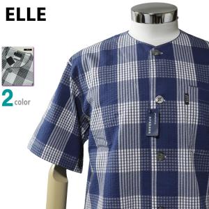 パジャマ Lサイズ メンズ 半袖 長ズボン ELLE エル サッカー地 綿100% 丸首 前あき 全開 紳士 ナイトウエア 夏