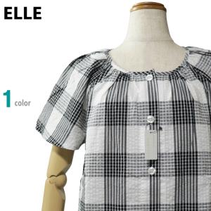 パジャマ Lサイズ レディース 半袖 8分丈パンツ ELLE エル サッカー地 綿100% 凸凹 丸首 前あき 全開 婦人ナイトウエア