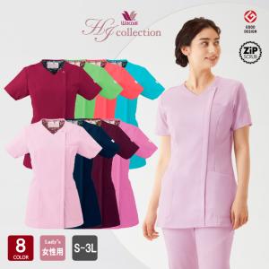 レディスジップスクラブ HI704 スクラブ レディース 半袖 医療 S〜3L 花柄 女性らしい 優しい フェミニン ワコール FOLK フォーク