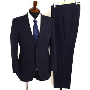 Kintetsu 2つボタン シングルスーツ S YA4 ダークネイビー ストライプ ノータック 袖口4つ釦 開き見せ 1KF7624 合物 春秋 6XB036