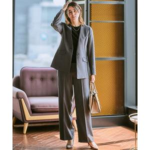 セットアップ 「洗える・ストレッチ」ウール調ワイドパンツスーツ(ロング丈ノーカラージャケット+パンツ) レディース