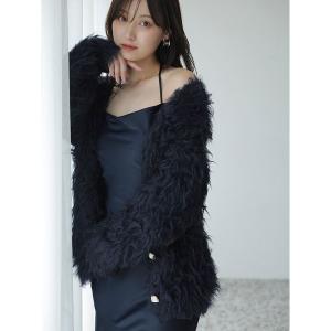 ジャケット ノーカラージャケット ファーライクフリルニットジャケット レディース