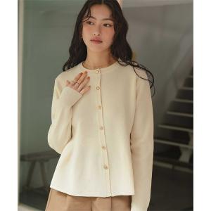 カーディガン 「26SS新作/2026 SPRING COLLECTION/手洗い可」ゴールド釦ペプラムニットカーディガン レディース