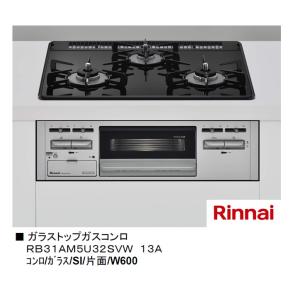 RB31AM5U32SVW 1台限り リンナイ ガラストップコンロW600 水無片面焼きグリル 都市ガス 条件付き送料無料!