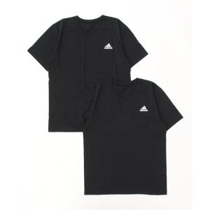 adidas/アディダス VネックTシャツ ワンポイントロゴ 2枚組 吸汗速乾