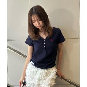 tシャツ 「WEB限定/お気に入り登録2.6万人」Vネックヘンリー胸刺繍半袖Tシャツ レディース