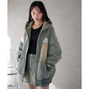 デニムジャケット gジャン WEGO/ヴィンテージウォッシュBIGフードブルゾン レディース